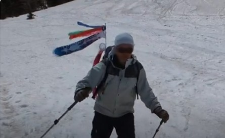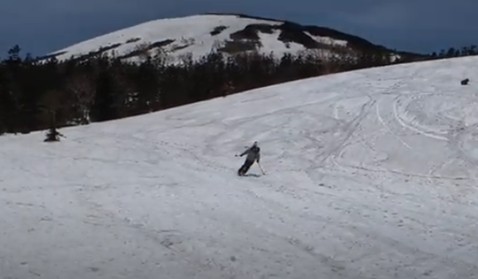 デポ地からの滑降につきまして、悪い雪質ではありませんでしたが、ちょっと斜面が急だったのと、体が滑降モードに慣れておらず、何回か自分は転びました。100mくらい滑ったころから、ようやく体が慣れてきて、斜面も滑るのにちょうどよい傾斜になり、思うようにテレマークターンが決まりだし(下動画)、来て良かったです。