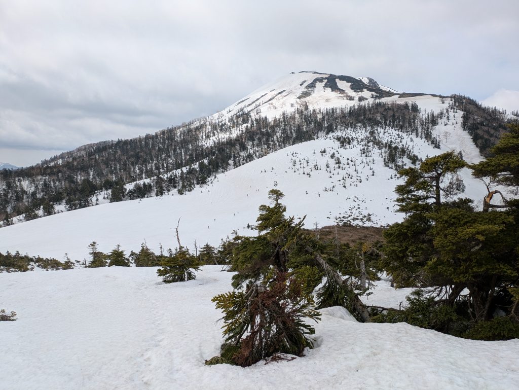 コースタイム:御池駐車場7:05~2325mにてスキー板デポ11:06~俎板嵓(燧ケ岳山頂)11:10~滑降開始11:55~御池駐車場12:43