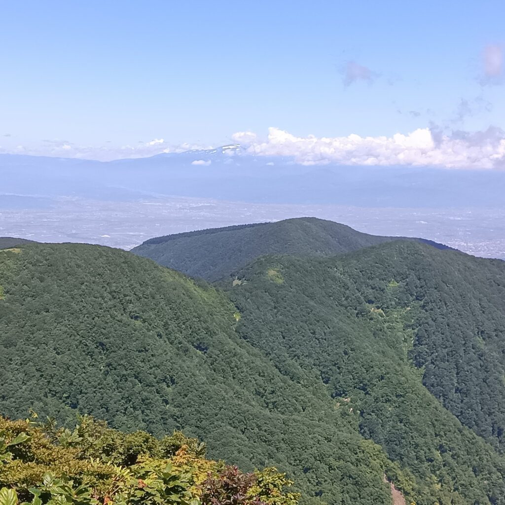 沢支度のまま登山道を東へ進むと徐々に沢筋に雪を残した山々が見えて来て間もなく山頂に到着、蔵王、船形山、月山、朝日、鳥海山など眺めを楽しんでから下降に入る。